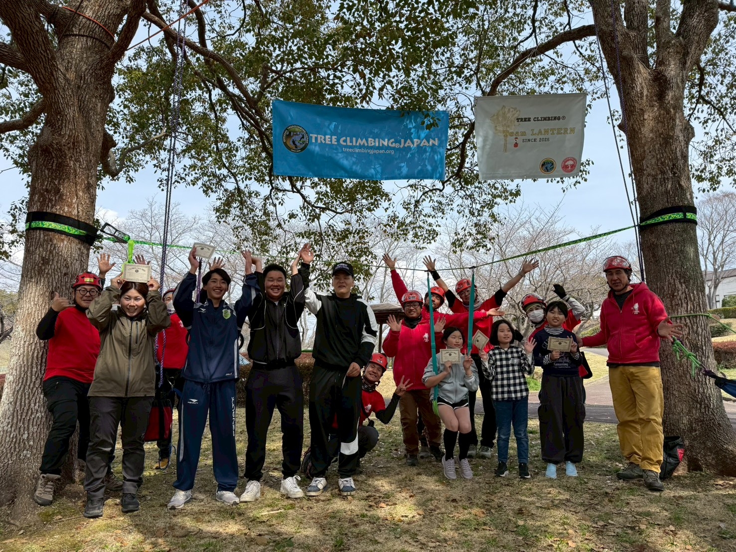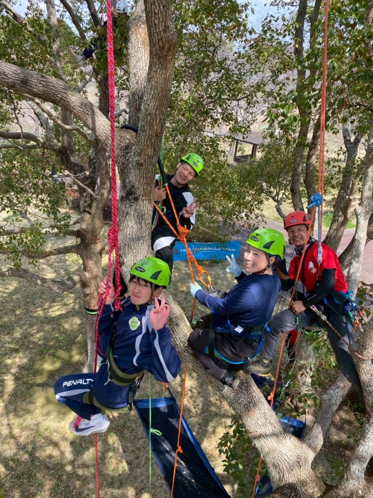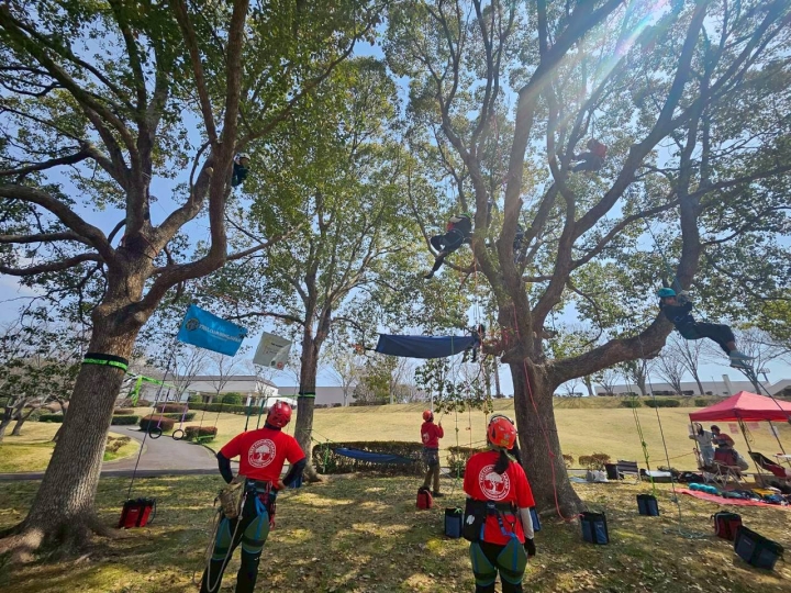 重兵衛スポーツフィールド中台 2026.3.22 体験会の様子 2026年3月22日 千葉県成田市にある重兵衛スポーツフィールド中台にてツリークライミング体験会を開催しました!成田市での初開催を目指しフィールドの準備(樹の選定)、枝の剪定など入念に行い迎えた体験会当日、天気に恵まれ絶好のツリークライミング日和になりましたもうすぐ6歳のお子様から大人まで17名の皆様にツリークライミングを楽しんでいただくことができましたクスノキさん クライミングさせてもらい ありがとうございました体験会参加のゲストの皆様 ありがとうございました また一緒に木登りしましょう!! 1回目参加の皆様 ワン ツー ツリー 初めてのツリークライミングでも楽しいー 樹上は気持ちが良いー